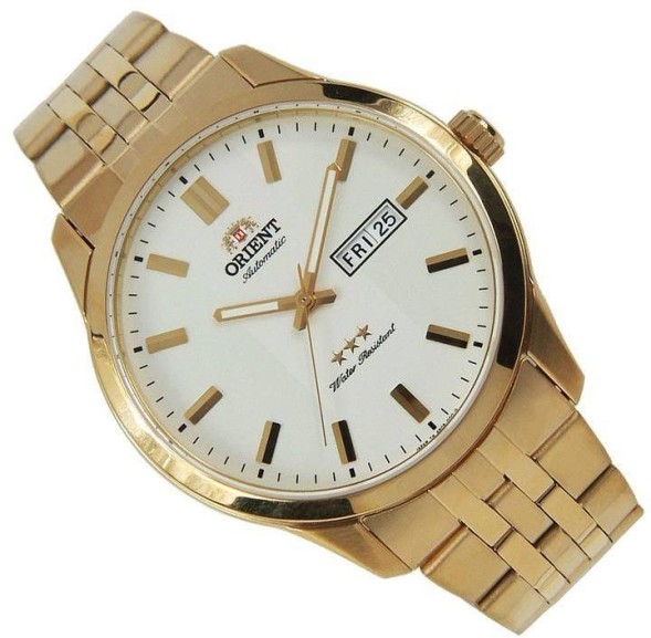 Мужские механические часы с автоподзаводом из серии 3 Stars. Стальной круглый корпус с покрытием цвета желтого золота. Минеральной стекло. Стальной браслет с покрытием цвета желтого золота. Браслетная застежка. Водозащита 50 м.