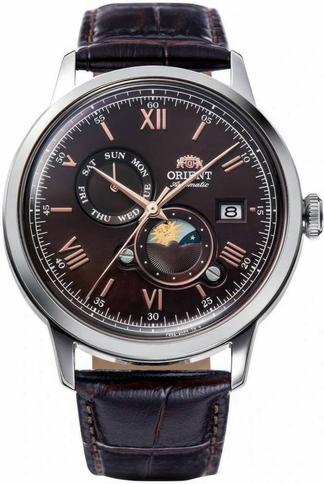 Качество этих классических часов от компании Orient оценит любой деловой мужчина, знающий цену каждой минуты. Мужские часы Bambino 9. В механизме 22 камня, частота 21600 полуколебаний в час. Запас хода 40 часов. Функция stop-second. Возможность ручного завода. День недели и индикатор день/ночь вынесены на отдельные циферблаты. Метки в виде штрихов и римских цифр. Окошко даты находится в положении 3 часа. Рифленая заводная головка. Прозрачная задняя крышка с минеральным стеклом.